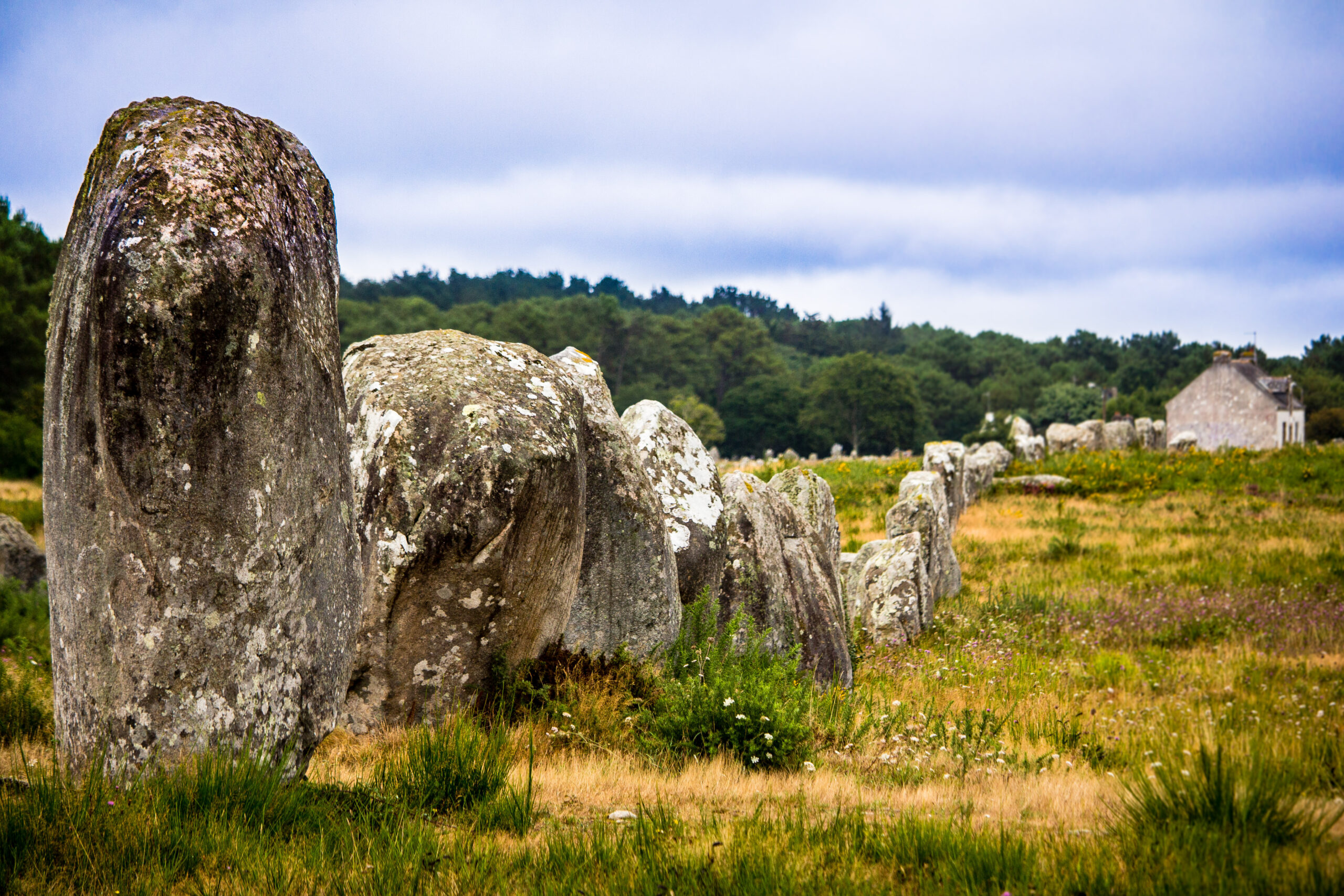 Commencez par les célèbres alignements de Carnac : plus de 3 000 menhirs dressés sur plusieurs kilomètres, vestiges monumentaux du Néolithique.
